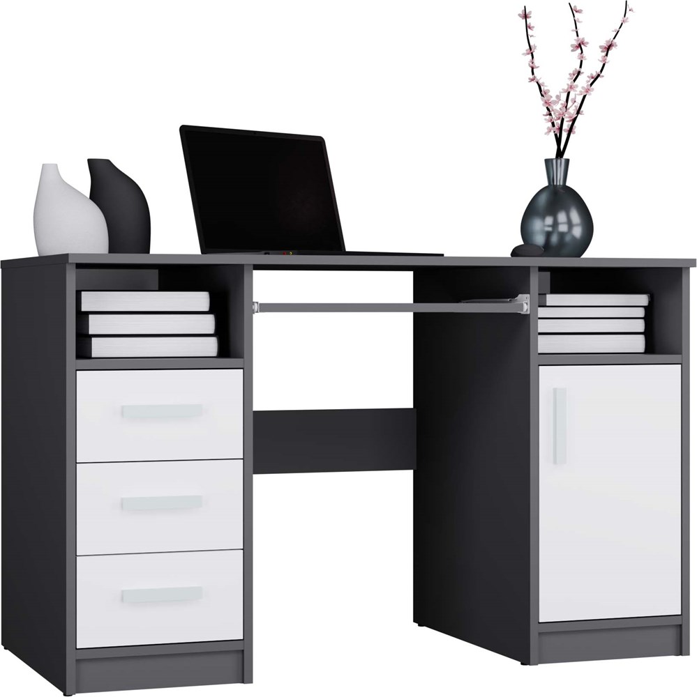 BIURKO DELTA ANTRACYT / BIAŁY 120 Cm 3 Szuflady Szafka Półki Do Biura Pokoju Na Laptop