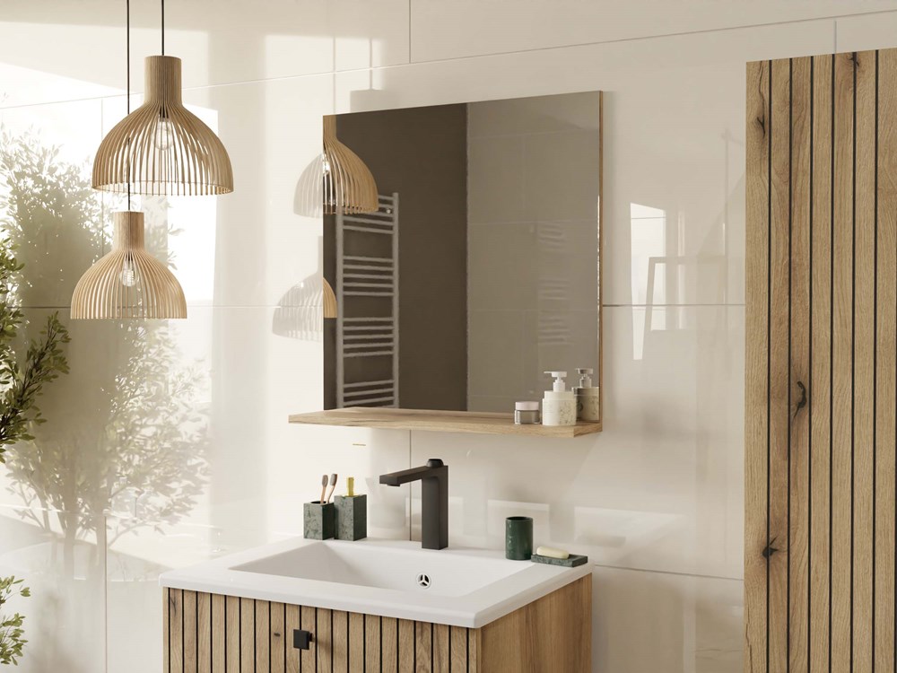 LUSTRO ŁAZIENKOWE Z PÓŁKĄ TIGO 60x61,5 CM DĄB EVOKE DO ŁAZIENKI PRZEDPOKOJU