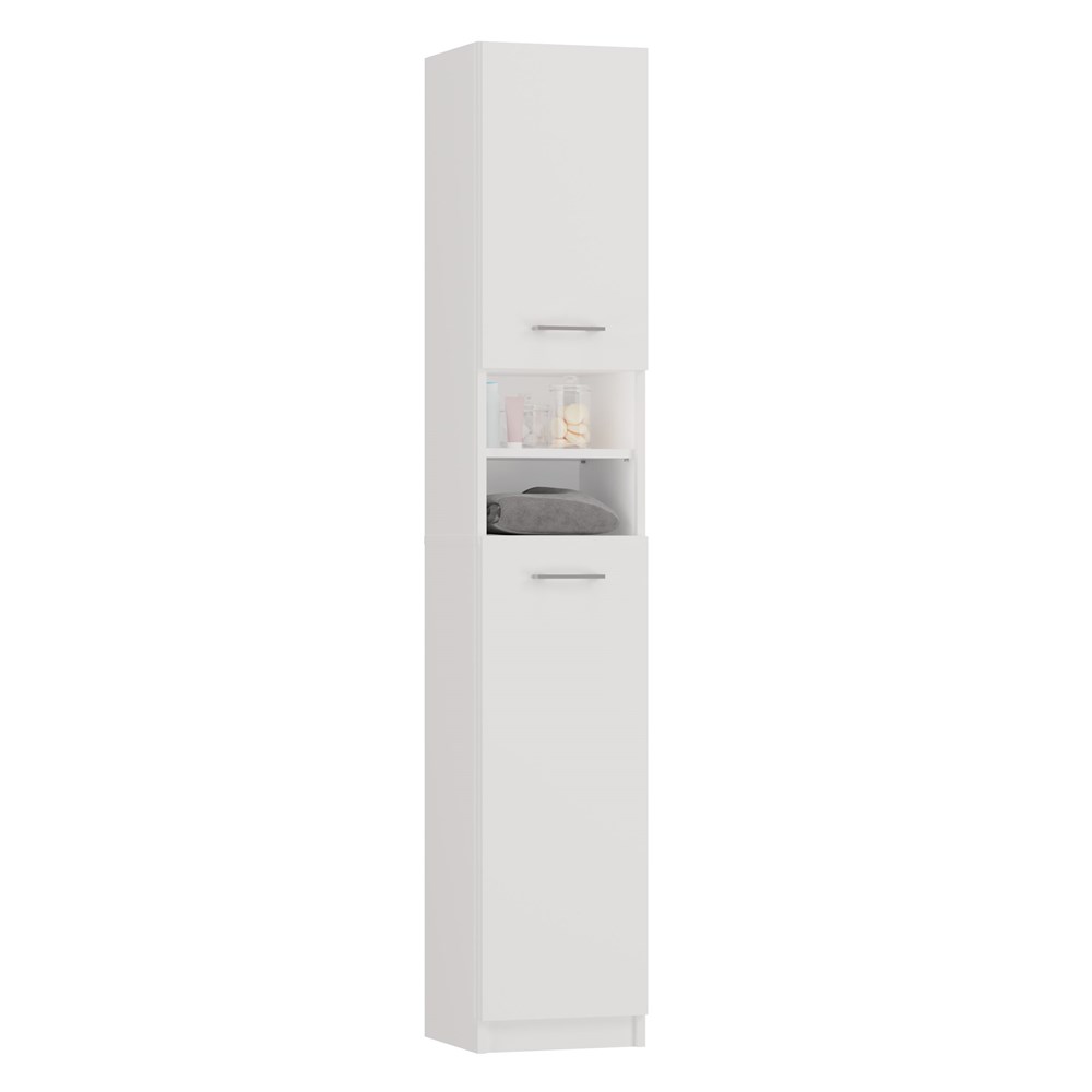 Słupek Łazienkowy ALVO 2D BIAŁY 8 Półek 2 Drzwi Szafka Do Łazienki