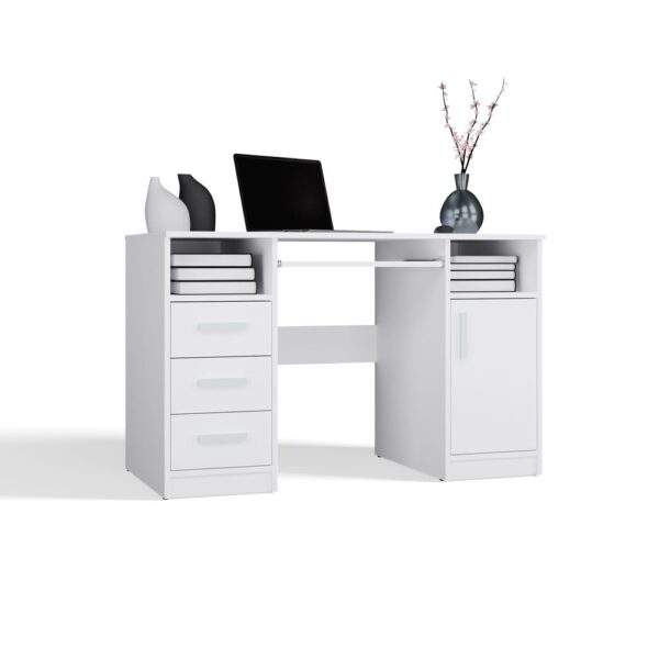 BIURKO DELTA BIAŁE 120 Cm 3 Szuflady Szafka Półki Do Biura Pokoju Na Laptop
