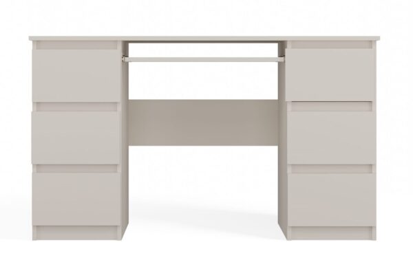 BIURKO model KUBA świetnie sprawdzi się w domowych pokojach jak i w biurze. Cechy charakterystyczne tego produktu to przede wszystkim solidne wykonanie oraz nowoczesny wygląd w modnym, ale wciąż unikalnym kolorze Kaszmir – odcieniu beżu, który dodaje wnętrzu elegancji i wyjątkowości.