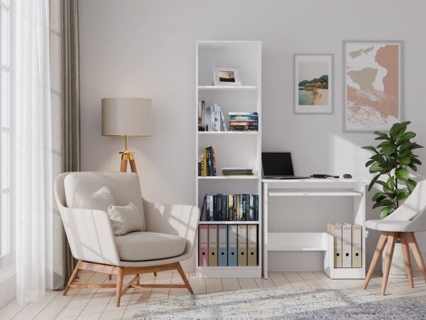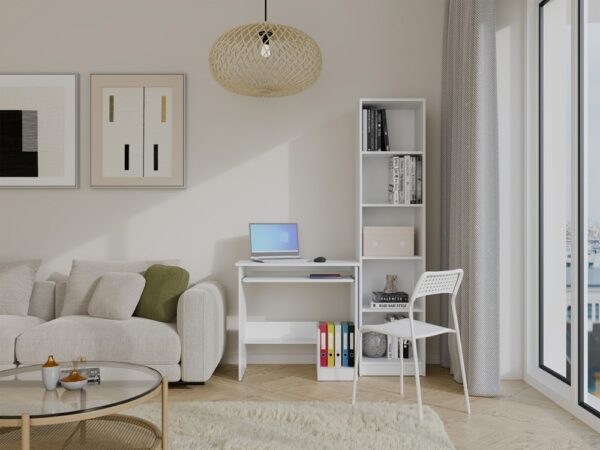 Biurko ROSA to kompaktowy, a zarazem bardzo funkcjonalny mebel, który doskonale sprawdzi się w małych przestrzeniach — zarówno w pokoju dziecięcym, młodzieżowym, jak i domowym biurze. Dzięki minimalistycznemu designowi oraz matowej bieli biurko idealnie wpisuje się w nowoczesne aranżacje wnętrz, optycznie powiększając przestrzeń.