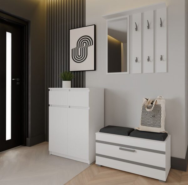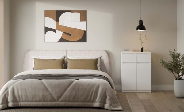 Komoda 2DD2S w klasycznym białym kolorze to elegancki i funkcjonalny mebel, który doskonale sprawdzi się w sypialni, salonie, przedpokoju lub pokoju dziecka. Dzięki swojej minimalistycznej formie i uniwersalnej kolorystyce wpasuje się w różne aranżacje wnętrz – od nowoczesnych po skandynawskie czy klasyczne.