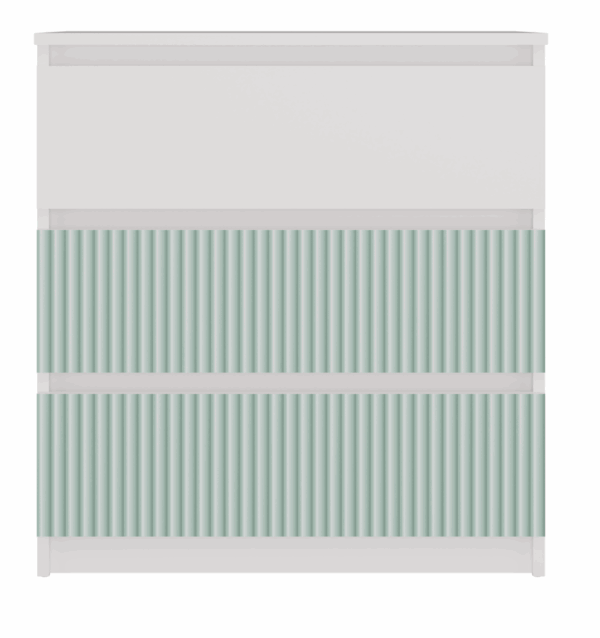 • Front dwóch dolnych szuflad – Pionowe wzory w kolorze miętowym nadrukowane w nowoczesnej technologii