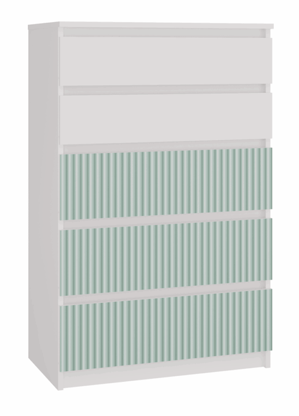 - Front trzech dolnych szuflad – Pionowe wzory w kolorze miętowym nadrukowane w nowoczesnej technologii
