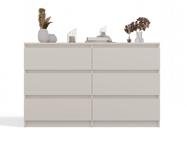 Odkryj nowoczesną komodę M6 120 z serii MALWA, która doskonale wpisuje się w najnowsze trendy wnętrzarskie. Ten funkcjonalny i pakowny mebel urządzi wnętrze Twojej sypialni, salonu, czy pokoju dziecka, dodając mu unikalnego charakteru.