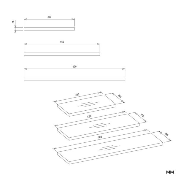 Półki wykonane z płyty meblowej laminowanej o grubości 16 mm
