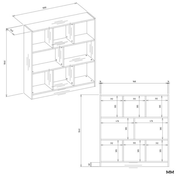 - 8 funkcjonalnych półek/przegród – idealnych na książki, dekoracje lub pudełka do przechowywania.