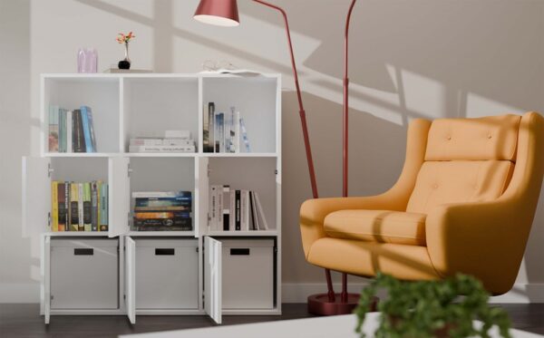 Nowoczesny i funkcjonalny regał MALAX 3X3 H z trzema frontami to świetna propozycja do salonu, gabinetu, pokoju dziecka czy domowego biura. Jego modułowa konstrukcja pozwala użytkownikowi decydować, w których komorach zamontować drzwiczki – dzięki temu z łatwością dostosujesz mebel do własnych potrzeb i aranżacji.