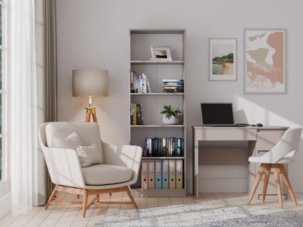 Elegancki i funkcjonalny regał R60 w kolorze glina to perfekcyjne rozwiązanie do przechowywania książek, segregatorów, zabawek oraz materiałów biurowych.