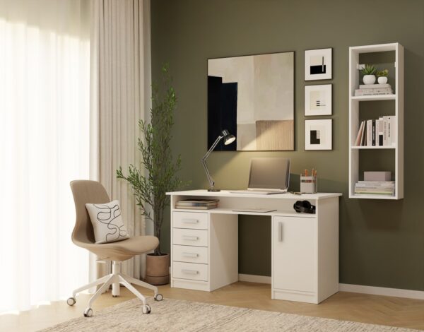 Dzięki trzem pojemnym komorom z łatwością uporządkujesz książki, dokumenty, dekoracje czy akcesoria codziennego użytku. Sprawdzi się zarówno w biurze, jak i w salonie, sypialni czy pokoju ucznia.