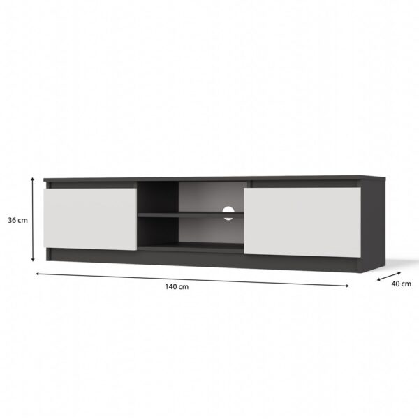 Szafka RTV 140 może posłużyć jako stolik pod telewizor, miejsce do przechowywania sprzętu audio video, a także jako dodatkowy schowek w salonie na drobne przedmioty użytku codziennego.