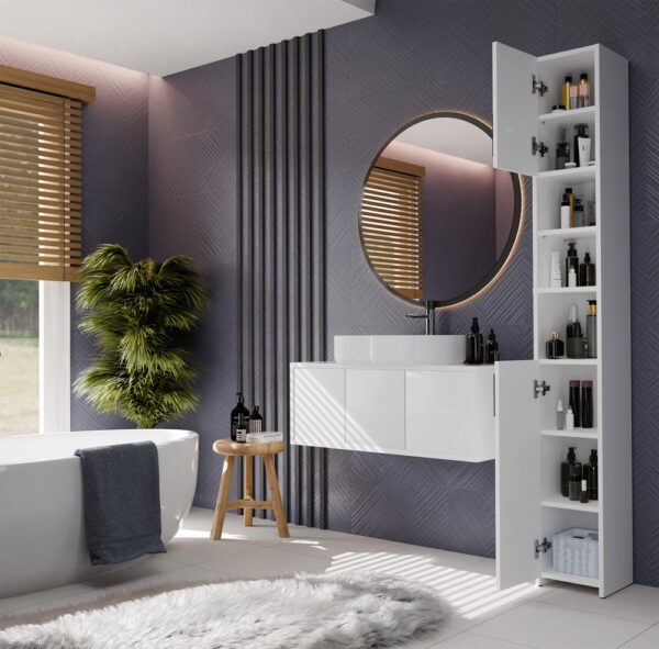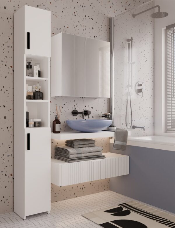 Słupek Łazienkowy ALVO 2D BIAŁY 8 Półek 2 Drzwi Szafka Do Łazienki