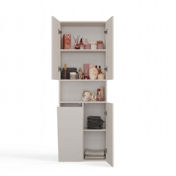 - 4 drzwi (za 3 drzwiami półki, za 1 drzwiami kosz na pranie/bieliznę)