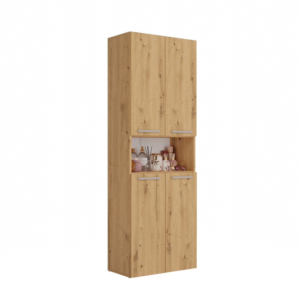 Przestronne półki umożliwiają przechowywanie ręczników, środków czystości i innych akcesoriów łazienkowych.