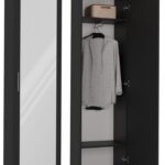 • W środku szafy dwie praktyczne półki oraz uchwyt na wieszaki.
