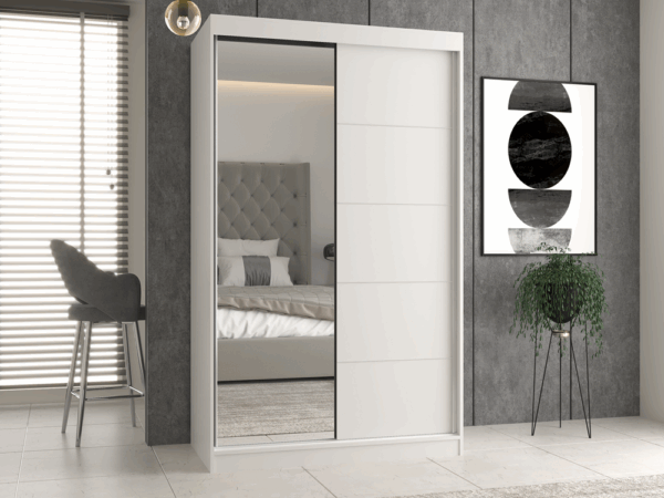 Na frontach jednych drzwi znajduje się duże lustro. Dzięki temu pomieszczenie w którym jest szafa, zostaje optycznie powiększone.