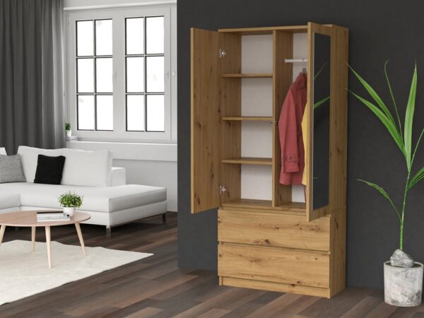 Szafa SS-90 z lustrami to praktyczny mebel, który znajdzie swoje miejsce zarówno w sypialni, gdzie posiadamy garderoby, ale również w biurze czy pracowni, gdzie dokumenty musza mieć swoje miejsce oraz można schować ubranie wierzchnie.