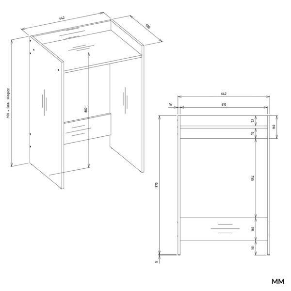 - Mebel wykonany jest z płyty laminowanej 16 mm.