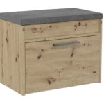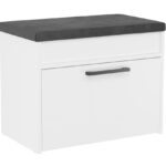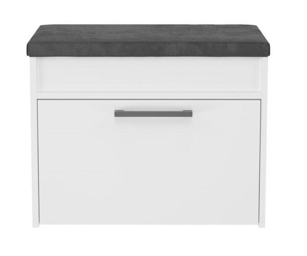 Komfortowa szafka na obuwie z tapicerowanym siedziskiem oraz schowkiem na gadżety. Szafka posiada uchylne drzwi za którymi znajduje się półka.