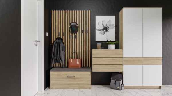 • Nowoczesna szafka na buty ze schowkiem pod siedziskiem