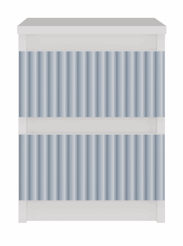 • Front szuflad – Pionowe wzory w kolorze niebieskim nadrukowane w nowoczesnej technologii
