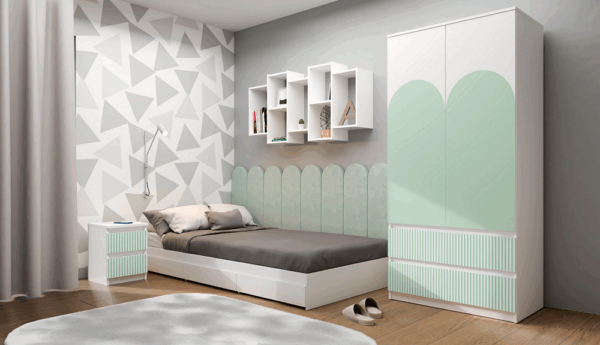 Seria ARTESO z nadrukowanymi, pionowymi wzorami to idealny mebel do pokoju dziecka lub pokoju młodzieżowego.