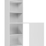 Zintegrowany regał wyposażono w część zamykaną drzwiami, za którymi znajdują się trzy pojemne półki, a także w szufladę oraz półki otwarte, dzięki czemu z łatwością posegregujesz wszystkie potrzebne rzeczy – od książek i dokumentów po drobiazgi.