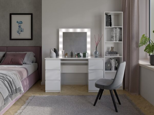 • Toaletka służy zarówno jako miejsce do przygotowania makijażu i innych zabiegów pielęgnacyjnych, jak i funkcjonalne biurko.